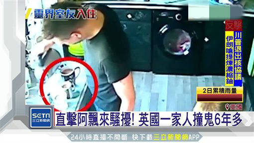 灵异现象并非人人都能亲眼目睹,但英国肯特郡这一家三口住了10年的房子里,却不时有阿飘在捣乱。画面中男子倒咖啡倒一半,杯子突然往后退,虽然桌上有水时,杯子自己滑动并非什么怪事。但这家人总觉得屋里气氛不太对劲,装了监视器后捕捉到惊人画面,四下无人的厨房里,红圈内的绿色椅子突然转了90度。